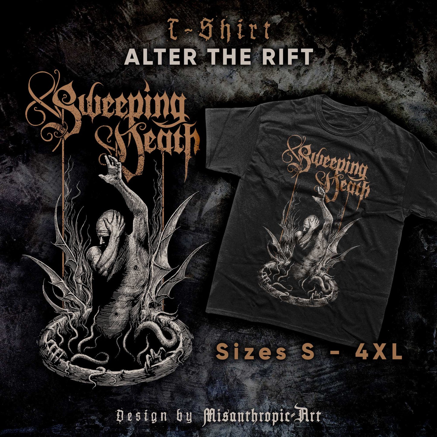 Schwarzes Gildan Heavy Cotton T-Shirt mit "Alter The Rift" Front-Aufdruck. Artwork by Misanthropic Art Illustration.